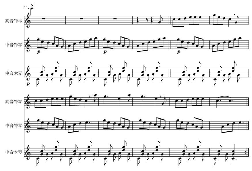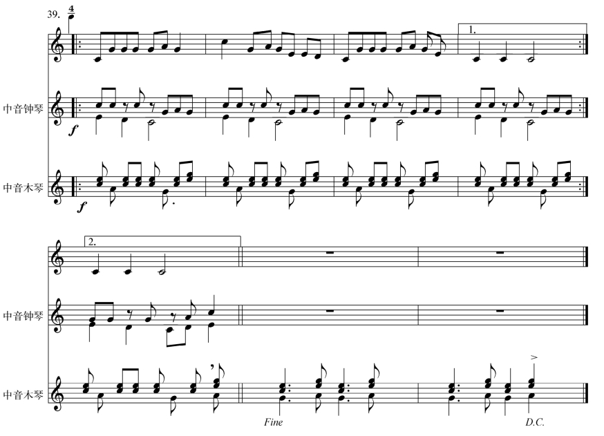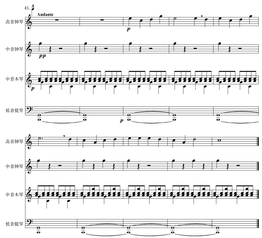 两小节的尾奏(中音钟琴和木琴演奏创编的尾奏伴奏音型)