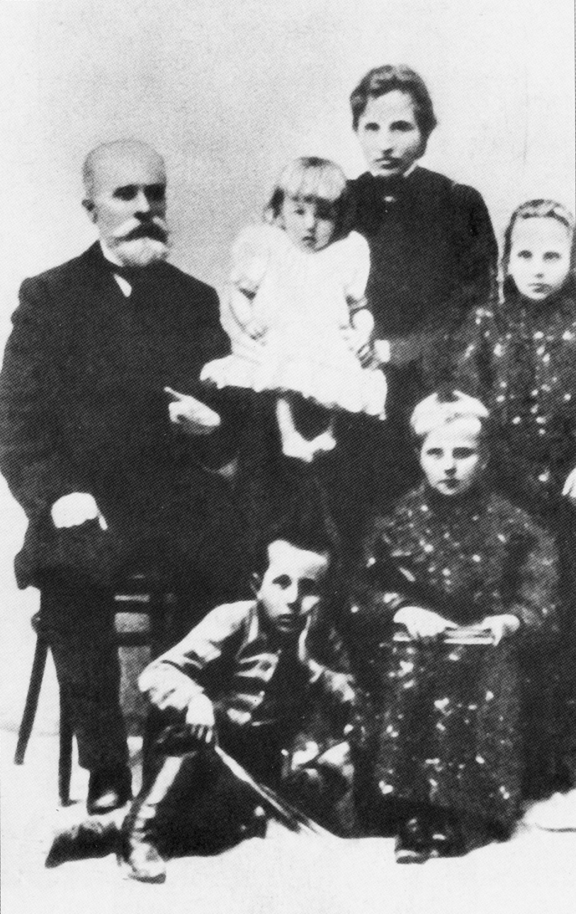奥斯特洛夫斯基一家。父亲阿列克谢、母亲奥里加、大姐娜佳、二姐卡佳、哥哥米佳和柯里亚。