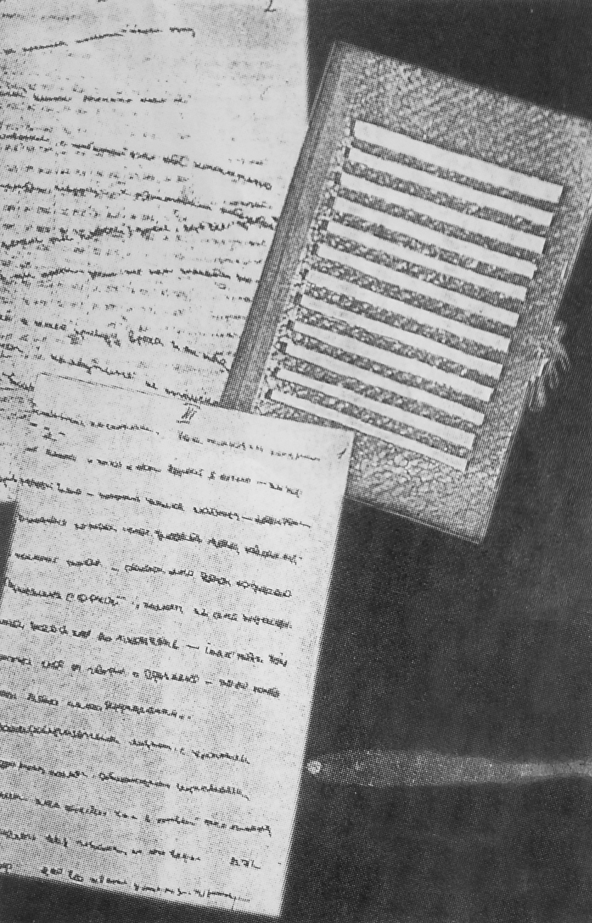 尼古拉独自留在家里,唯一能使用的工具是那根小棍子——一端缠着纱布的细木棍。当时,他还剩下一点点视力,如果别人俯下身去,凑近他的眼睛,他可以勉强看到对方的面孔,甚至分辨出上衣的花纹;如果是一张信纸,他可以借助放大镜,看清纸上的字句。然而,他无法这样写字,因为他只能直挺挺地仰面躺着,动弹不了。实在需要,就只能瞎摸着写。