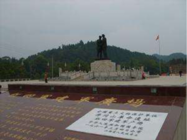 12. The site of Jianjun Square of the Fourth Army: On May 4, 1928, the Fourth Army of the Workers and Peasants Revolutionary Army was established here (later renamed the Fourth Army of the Chinese Red Army). In the past, it was a sand field. The conference stage was erected with buckets, wood and door panels. After the founding of the People's Republic of China, it was listed as a national key cultural relics protection unit and the conference stage was restored.
