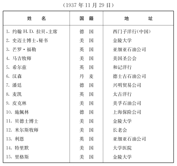 下面是南京安全区国际委员会成员名单: