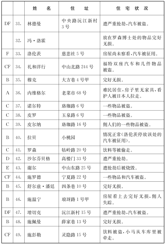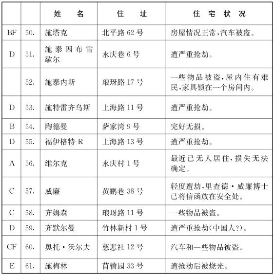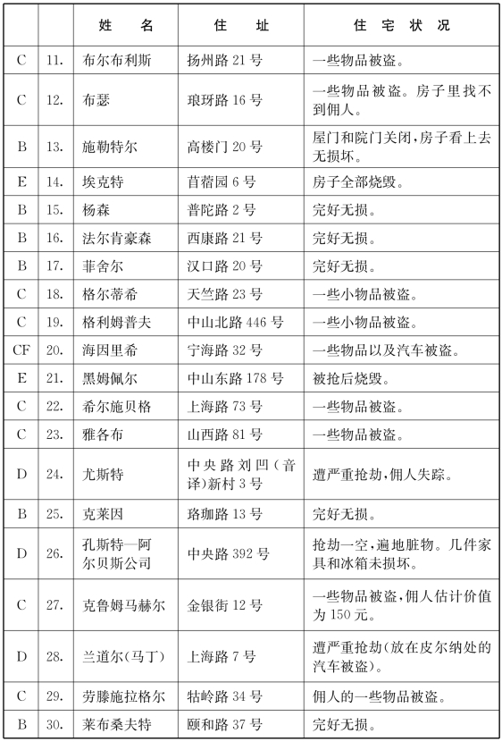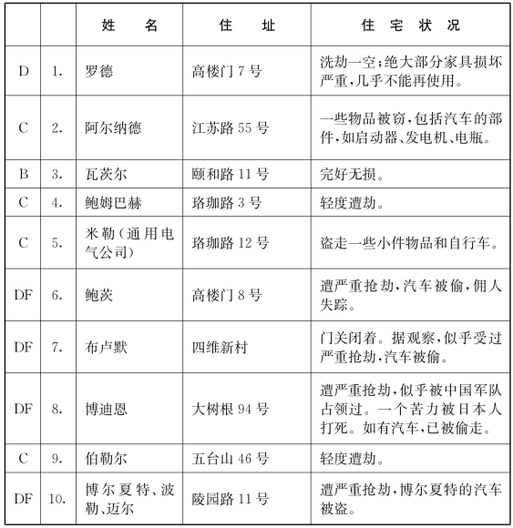 其余未提到的德国人的房子也都遭到了抢劫,但程度并不严重,被抢走的东西中多半也还包括中国佣人的财产。