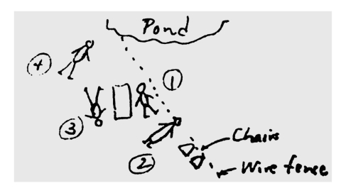 拉贝先生和米尔斯先生立即跟她来到现场,发现4具尸体躺在血泊之中,详见下列草图: