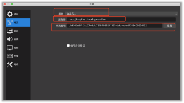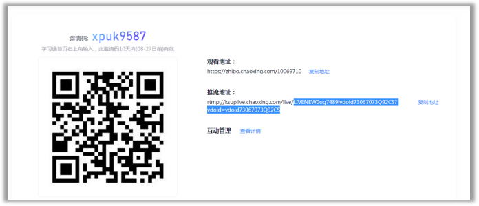 URL/服务器:rtmp://chaoxing.uplive.ks-cdn.com/live/