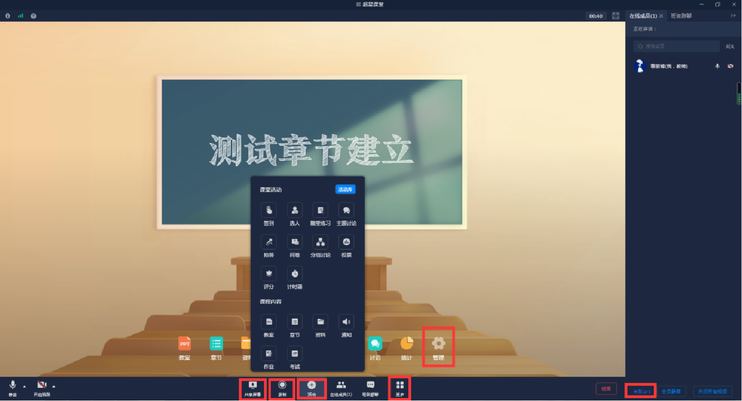 点击【添加活动】,从课堂活动中选择【在线课堂】,