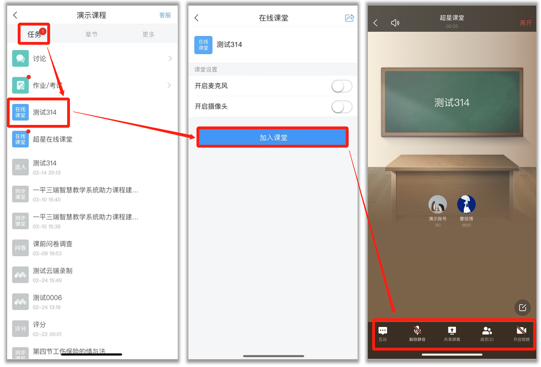 进入我学的课,在任务列表,找到要进入的课堂,点击进入,跳转到泛雅课堂界面。可以互动,发言或共享屏幕。