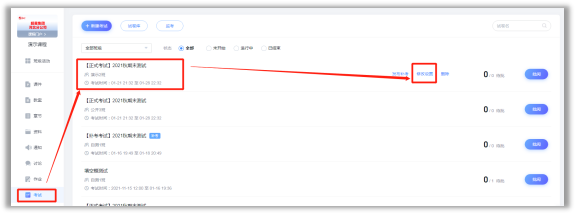 ④发放后的试卷会进入到,考试模块下。如需修改考试设置,可以点击对应考试的修改设置进行修改。