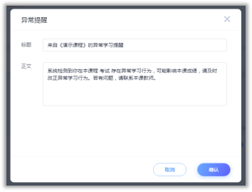 ④点击提醒,可以给学生发送异常提醒,避免以后出现此种行为。