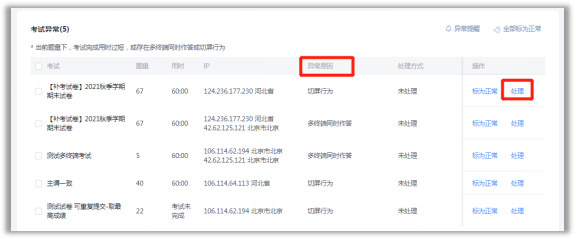 ②点击异常分析的查看,可以看到学生的异常行为记录,可以针对异常学习记录进行处理。