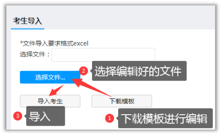 ②批量导入考生:点击右上角【批量导入】,可下载模板,在模板中填写,学生学号、姓名,导入学生名单。