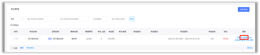 ①点击对应考试的【考生管理】,进入考生管理界面。