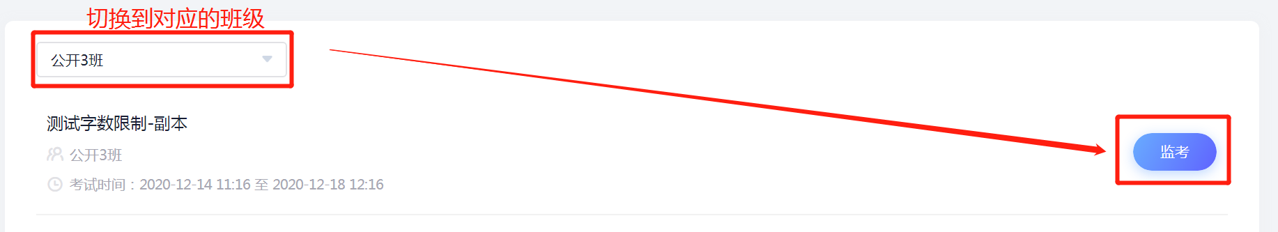 2.进入监考,切换到要监考的班级,点击对应考试后面的【监考】,进入监考界面。