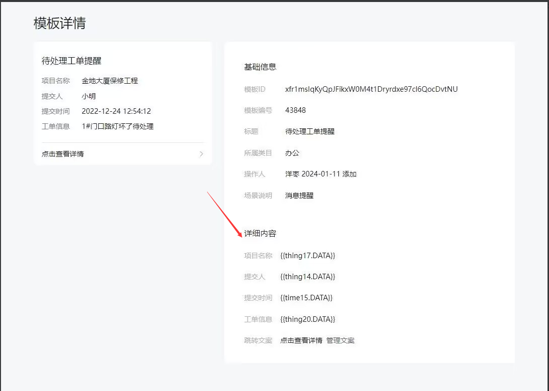 1.工单提醒:项目名称 {{thing17.DATA}}