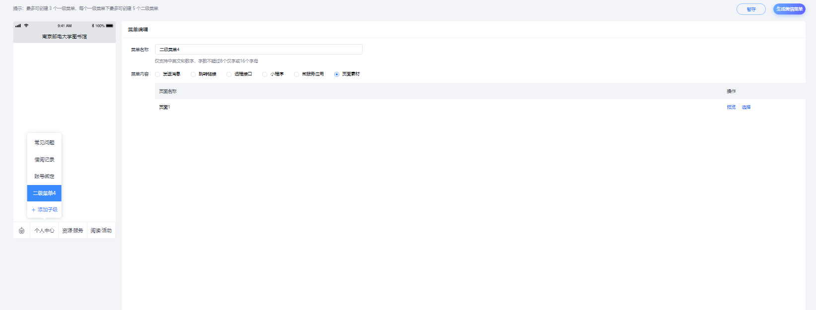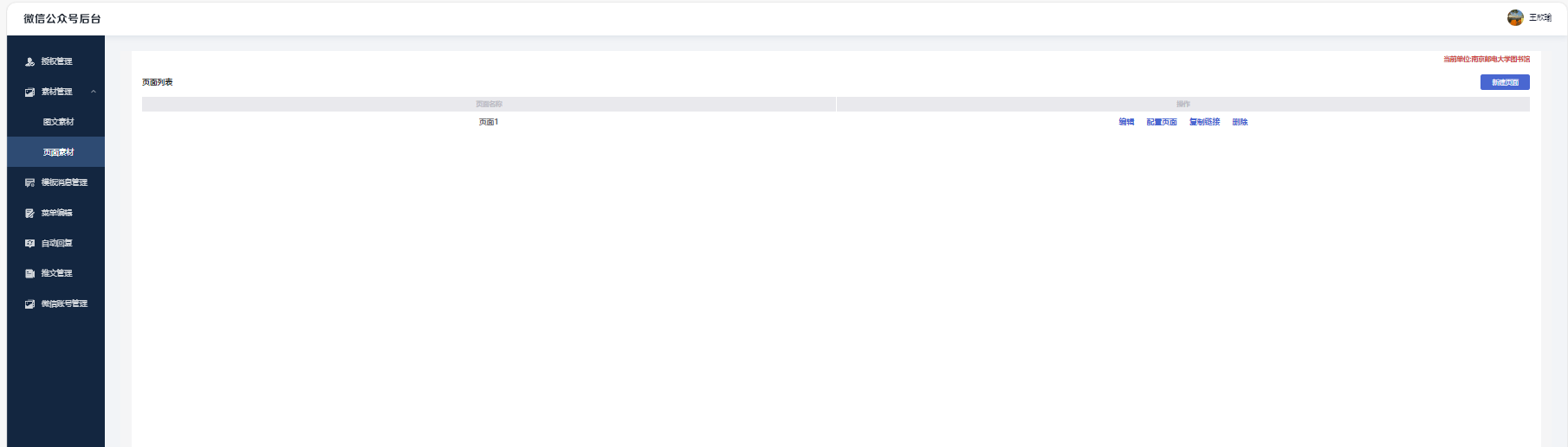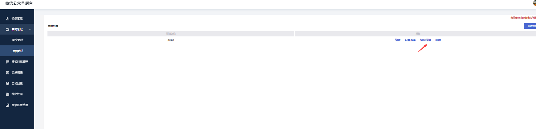 点开终端配置——微信端配置-素材管理-页面素材,一个单位可配置多个微信端页面