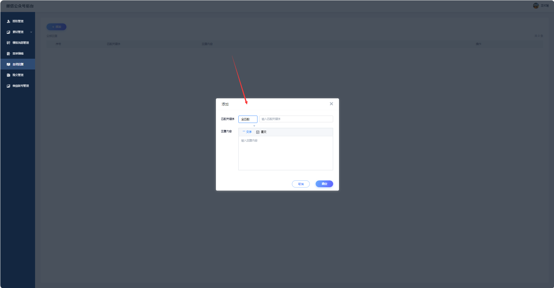 通过选择全匹配和半匹配,用户在微信公众号输入关键字会公众号会自动回复图文或文字。