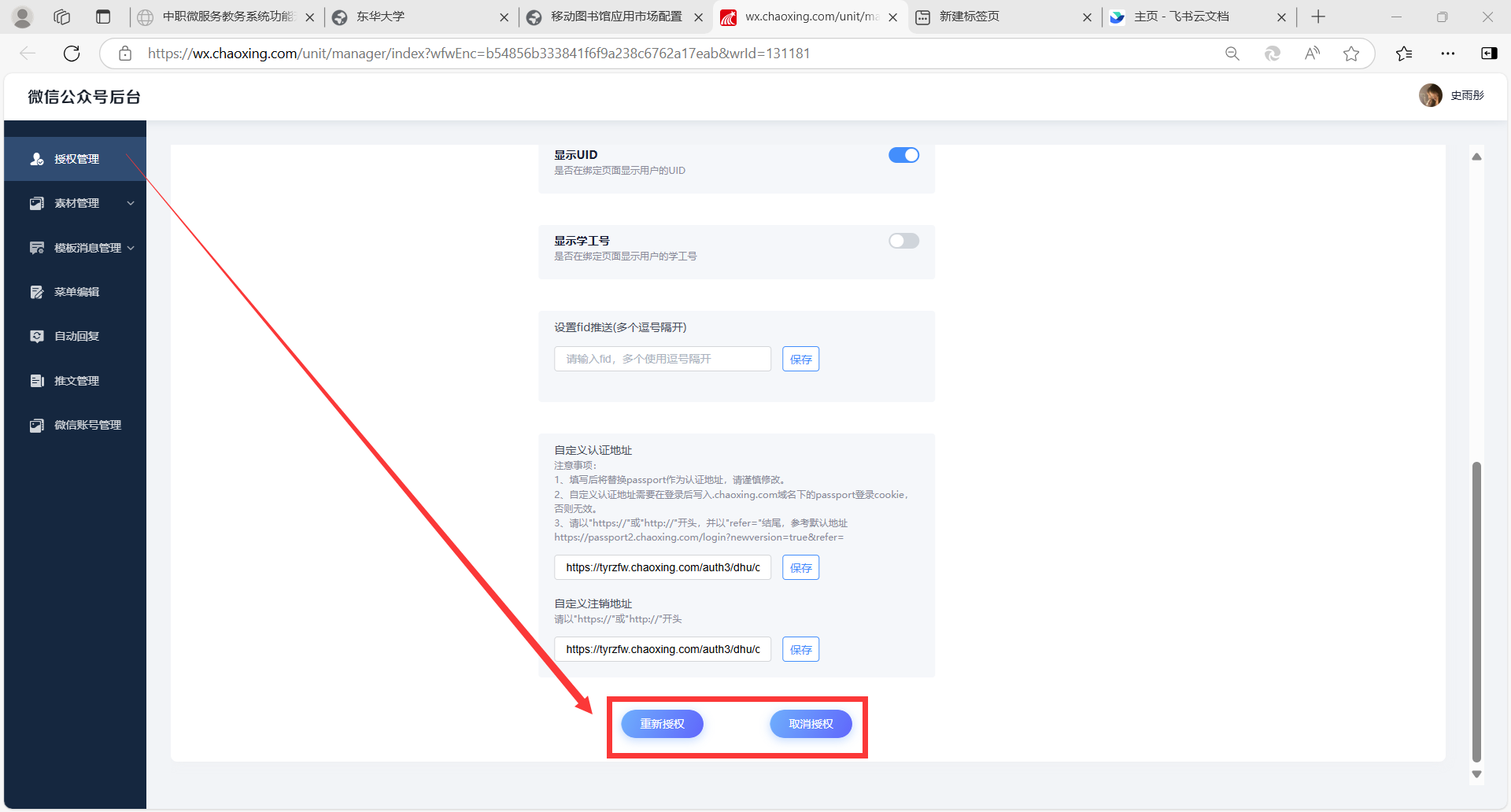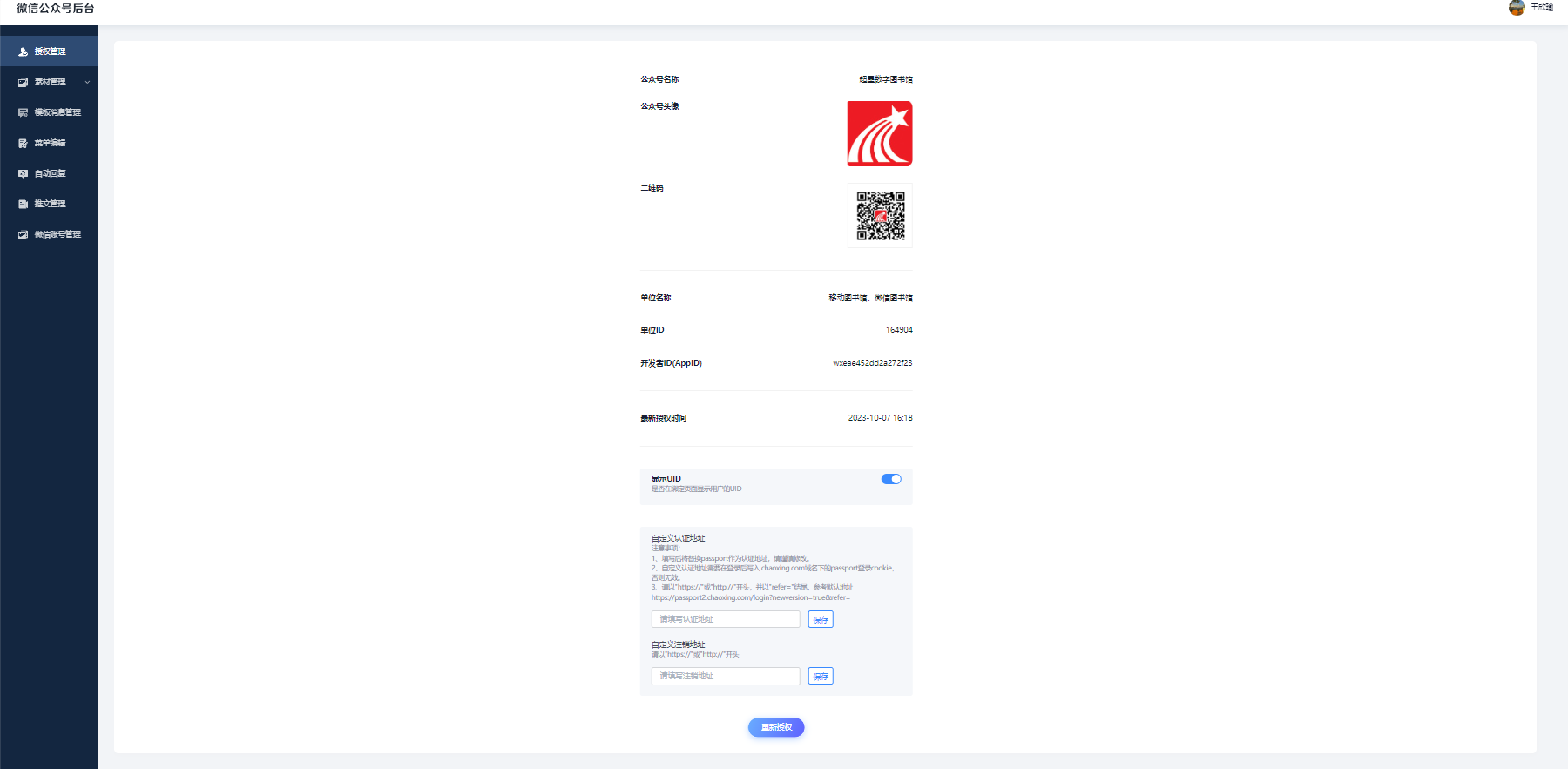 微服务后台-终端管理-微信公众号,点击重新授权/取消授权,重新扫码授权一次就可以了