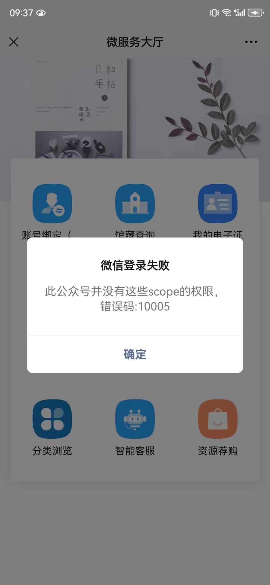 2.如果是订阅号,网页点击应用报错10005,原因:订阅号拉取不到网页授权,微信公众号官方已做限制。需要把登录的应用单独挂在菜单上,以跳转链接的形式出现
