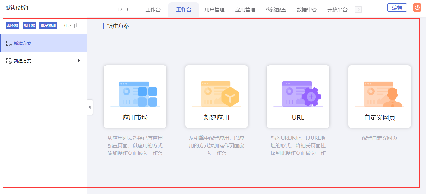 应用市场:从单位已添加的应用中选择一个应用,显示在右侧;