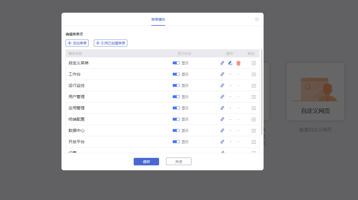 step 2:配置自定义菜单页面(系统菜单、引用的菜单不能再进行配置)