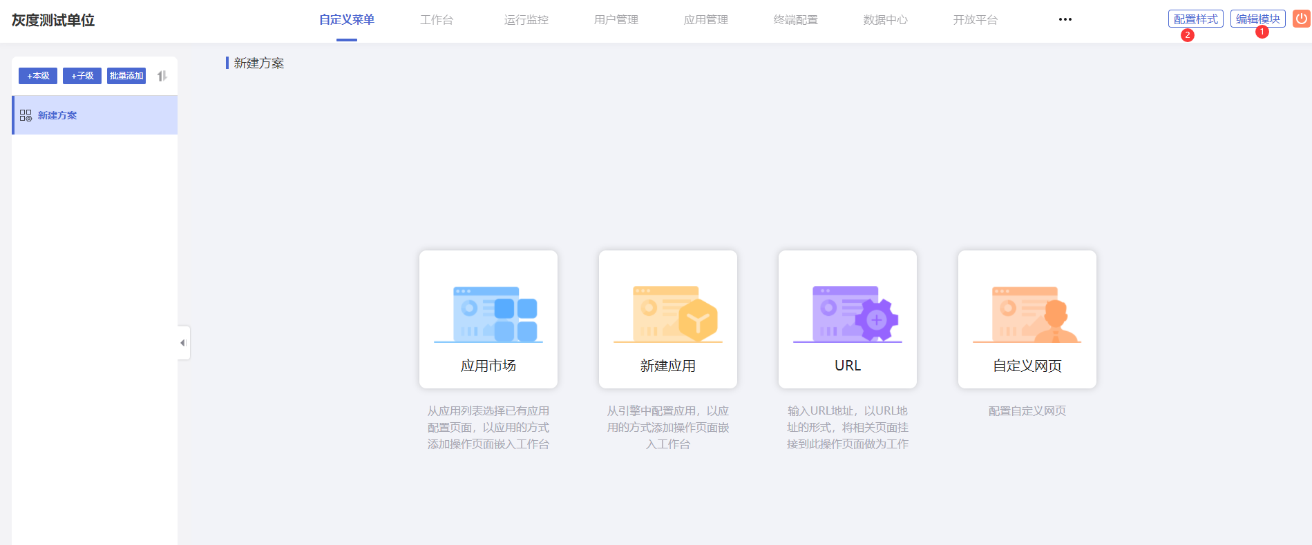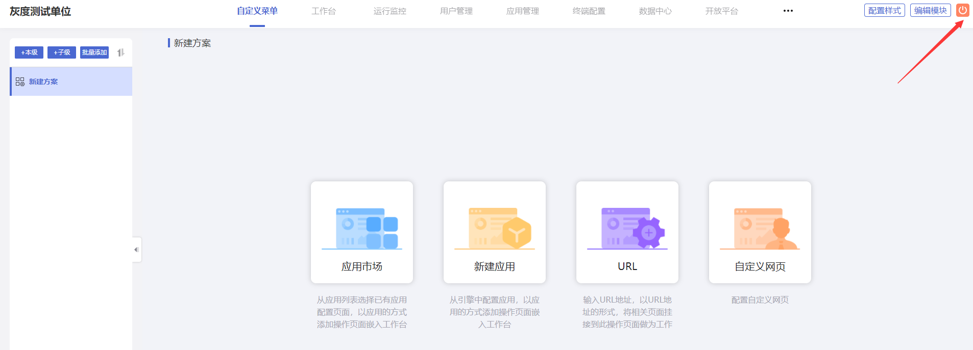 如果是平铺结构,没有左侧编辑左侧菜单操作区;