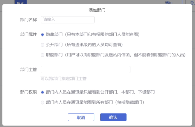 部门权限:该通讯录下用户查看通讯录部门的权限