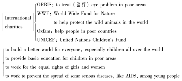 【设计理念:通过这个活动来检查学生对四大慈善组织的记忆情况以及他们灵活运用所学知识的能力。在这个活动过后提出一个问题,问学生想为哪个慈善机构效力,既很好地承接了上文,又很自然地导入了下文,即B部分的对话。】