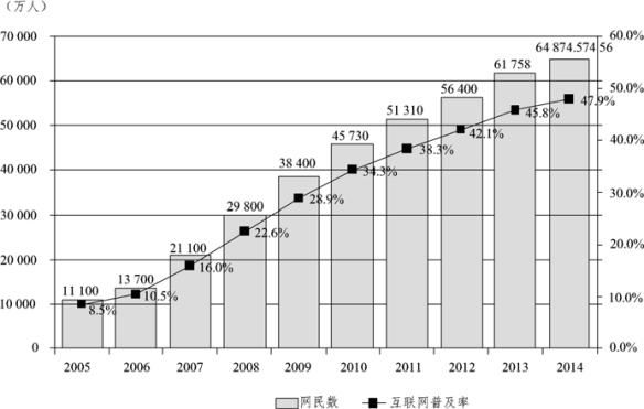 很多年之前就有人曾预言,社会越往后发展将不会再有“互联网公司”“网络企业”这些分类,因为到时候所有的企业都以互联网为载体出现于市场中。2015年3月,第十二届全国人民代表大会第三次会议开幕会在北京人民大会堂举行。国务院总理李克强提出并制定“互联网+”行动计划。他在政府工作报告中提出:“制定‘互联网+’行动计划,推动移动互联网、云计算、大数据、物联网等与现代制造业结合,促进电子商务、工业互联网和互联网金融健康发展,引导互联网企业拓展国际市场,引领其他行业的高速前进。简单地说就是‘互联网+传统行业=互联网新兴行业’。”比如,“传统集市+互联网”等于淘宝网,“传统百货公司+互联网”等于京东网,“传统银行+互联网”等于支付宝,传统以人为载体的“红娘+互联网”等于世纪佳缘、百合网,传统“大众交通+互联网”等于新兴的uber、快的、滴滴等,而传统大众传媒的“新闻+互联网”便有了柴静《穹顶之下》病毒式的网络传播。而传统的“物质经济+互联网”便产生了新的信息经济,传统的“市场营销+互联网”便有了网络营销。中国网民从20世纪90年代到21世纪的发展是迅速的,20世纪90年代互联网作为一种新兴的沟通工具出现在网民的视野中,21世纪初随着网络的普及,中国的网络用户呈上升趋势,经过几年的发展。截至2015年,中国的网络已经成为人们生活当中必不可少的基础设施,网民达到近6亿的数量,并且仍然保持较高的速度增长,越来越多的人将时间交给了互联网,在互联网上生活、学习和工作(图8-2)。而在市场经济中,与互联网捆绑在一起的市场营销模式已经为中国社会带来了巨大的经济价值,并引起巨大的社会变革,开始由满足买方市场的需要走向创造买方市场。