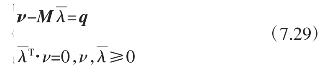 式中M=Mc-MgK-1H,q=-MgK-1f。显然,式(7.29)是一个标准的线性互补问题,表示为LCP(q,M),传统的线性互补求解算法如Lemke 算法(参见7.5)可以很方便地对其进行求解。从式(7.29)求得后代入式(7.28)即可求得未知向量U。