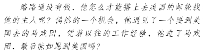 接下来,巴图尔卡先生又问了路路通很多其他技能。路路通曾经也当过马戏班的演员,当然学了不少,于是巴图尔卡先生就答应雇用他了。