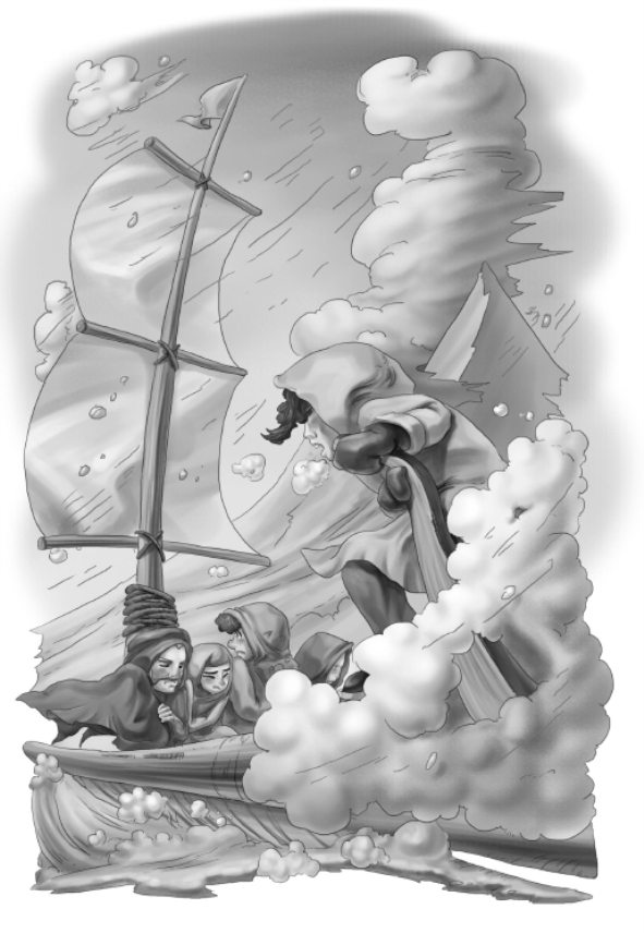 旅客们紧紧地挤在一起,冷得说不出话来。雪橇轻盈地在雪野上滑行,像一条滑行在水面上的小船,但它比小船更稳。当寒风吹过大地时,雪橇就像是离开地面腾空飞行那样轻快,麦基紧握着舵把,使它保持着直线前进。