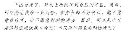 船长斯皮蒂开始搔起头来了,顺路带个旅客好像也不是那么麻烦的事吧,8000,净赚8000啊。他完全可以把他们当作2000美元一个的贵重货物顺路带一下的。