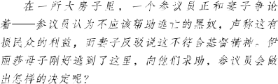“我是从肯塔基州来的……”伊丽莎将她怎样逃跑、怎样过河的情景叙述了一遍。