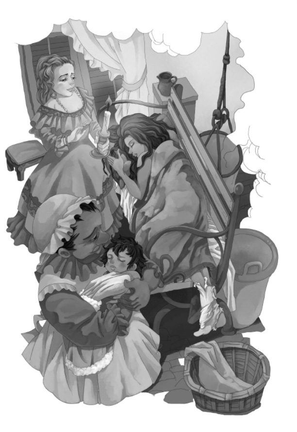 在伯德太太的悉心照料下,母子俩渐渐入睡。伊丽莎在睡梦中,胳膊还紧紧搂着孩子,生怕失去他。