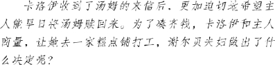 谢尔贝太太计算了一下,告诉卡洛伊只要四五年就能凑齐那笔钱了。