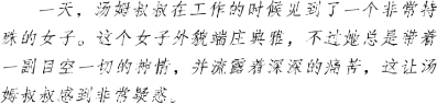 她从人群中走过时,汤姆听到旁边的黑奴在议论纷纷。