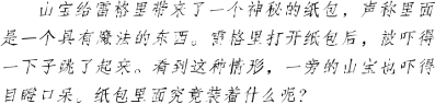 这时,山宝推门进来了,他向雷格里鞠了一躬,然后拿出一个纸包。
