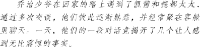 有一天,德都太太向乔治少爷问道:“你们附近一带有一个姓哈里斯的人吗?”“有,他家离我父亲的庄园不远,”乔治想了想说,“不过,我们跟他一向没有什么往来。”