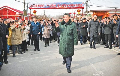 2月1日至2日,中共中央总书记、国家主席、中央军委主席习近平来到天津,看望慰问基层干部群众。这是1日上午,习近平在西青区辛口镇第六埠村考察时,向村民们挥手致意。新华社记者 谢环驰摄