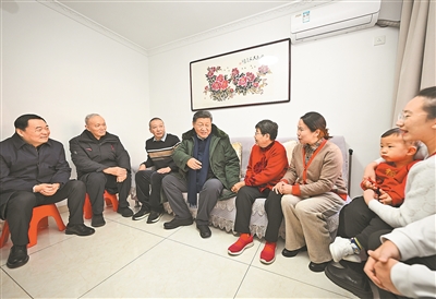 23日上午,习近平在沈阳大东区长安街道长安小区社区党群服务中心考察时,向全国各族人民和香港同胞、澳门同胞、台湾同胞、海外侨胞致以美好的新春祝福。新华社记者 谢环驰摄
