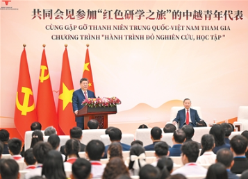 苏林表示,“红色研学之旅”启动一年来,上千名越南青年沿着老一辈领导人足迹参访在中国的红色遗址,体悟两国的革命传统和深厚友谊。青年是越中两党两国关系的重要桥梁,希望两国青年进一步坚定理想信念,提高政治本领,掌握科学知识,深化对越中关系的认识,为各自国家发展和两国友好发挥重要作用。