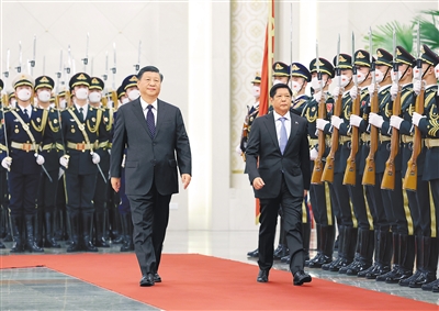 一月四日,国家主席习近平在北京人民大会堂同来华进行国事访问的菲律宾总统马科斯举行会谈。这是会谈前,习近平在人民大会堂北大厅为马科斯举行欢迎仪式。新华社记者 姚大伟摄