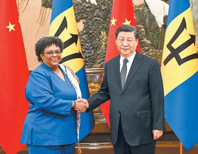 习近平指出,巴巴多斯是东加勒比地区最早同中国建交的国家,也是中国在这一地区的好朋友、好伙伴。中巴两国虽然远隔重洋,但志同道合、携手同行,双边关系不断深化发展。中国正在以高质量发展推进中国式现代化,这将为巴巴多斯发展和中巴合作带来新机遇,欢迎巴方搭乘中国发展“快车”,同中方构建更紧密中巴命运共同体。