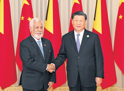 9月23日上午,国家主席习近平在杭州西湖国宾馆会见来华出席第19届亚洲运动会开幕式的东帝汶总理夏纳纳。两国领导人共同宣布将中国和东帝汶关系提升为全面战略伙伴关系。