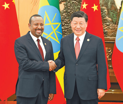 习近平祝贺埃塞俄比亚获邀加入金砖合作机制,指出埃塞俄比亚是共建“一带一路”的重要参与方,10年来中国和埃塞共建“一带一路”合作领域之广、成果之丰都走在中非合作前列。双方要以建立全天候战略伙伴关系为契机,不断巩固友好互信,深化务实合作,推动两国关系取得更多成果,做共同发展、合作共赢的朋友和促进南南团结合作、维护国际公平正义的伙伴。