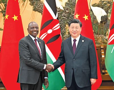 10月18日晚,国家主席习近平在北京人民大会堂会见来华出席第三届“一带一路”国际合作高峰论坛的肯尼亚总统鲁托。新华社记者 李学仁摄