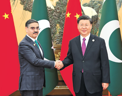 习近平指出,中国和巴基斯坦是全天候战略合作伙伴和铁杆朋友,巴历届政府都积极支持和参与“一带一路”合作。10年来,中巴经济走廊取得丰硕成果,有力推动巴基斯坦经济社会发展,成为共建“一带一路”的重要标志性工程。中方愿同巴方弘扬传统友谊,深化互利合作,加快构建新时代更加紧密的中巴命运共同体。