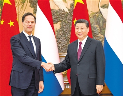 习近平指出,近年来,中荷关系稳健快速发展,两国各领域合作持续深化,荷兰已经成为名副其实的中欧合作“门户”。中方愿同荷方保持各层级交往,坚持沟通对话,坚持互利共赢,推动中荷开放务实的全面合作伙伴关系不断发展。中方愿扩大荷兰优质商品进口,欢迎荷兰企业来华投资,也希望荷方为中国企业提供公正、透明的营商环境。双方要积极推进农业、水利、能源等传统合作,同时挖掘人工智能、绿色转型、银发经济等领域合作潜力。希望双方继续采取更多便利人员往来措施,鼓励教育、文化和民间交流。中方愿同荷方加强在联合国、世界贸易组织等多边机构的沟通协调,共同应对气候变化、生物多样性等全球挑战。