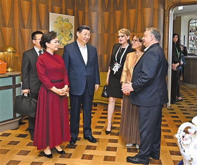 当地时间5月10日中午,国家主席习近平和夫人彭丽媛在布达佩斯应邀出席匈牙利总理欧尔班和夫人举行的饯行活动。