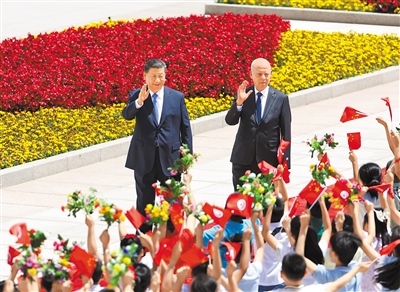 5月31日上午,国家主席习近平在北京人民大会堂同来华国事访问并出席中国—阿拉伯国家合作论坛第十届部长级会议开幕式的突尼斯总统赛义德举行会谈。两国元首宣布,建立中突战略伙伴关系。