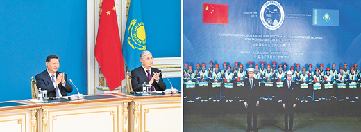 本报阿斯塔纳7月3日电 (记者张朋辉、刘少华)当地时间7月3日中午,国家主席习近平同哈萨克斯坦总统托卡耶夫在阿斯塔纳总统府以视频方式共同出席中欧跨里海直达快运开通仪式。